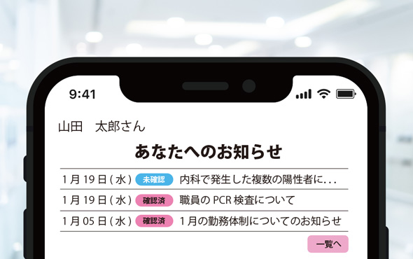 病院内でクラスター発生を予防する一方で、業務効率を上げて職員のストレスを軽減を目指しています。