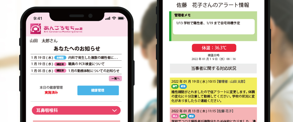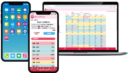 職員の体調を毎日見える化。スマートフォンから簡単に登録できるから毎日継続しやすいアプリです。